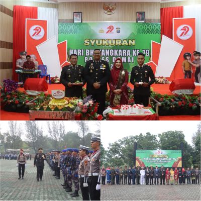Bertempat di Halaman Kantor Walikota Dumai di Jl. Tuanku Tambusai, Kelurahan Bagan Besar, Kecamatan Bukit Kapur, Kota Dumai, Polres Dumai melaksanakan Upacara Peringatan Hari Bhayangkara ke-79, (1/7).