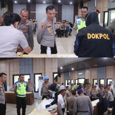 Rangkaian kegiatan meliputi verifikasi data personil, pengambilan sampel urine, hingga pemeriksaan yang dilakukan oleh tim medis. Seluruh kegiatan berjalan dengan aman, lancar, dan kondusif.